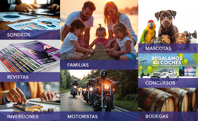 Tipos de listas: Públicas – Sondeos de mercado – Abonados a revistas de arte, economía, turismo, etc. – Coorregistros – Concursos online (pregunta ad hoc) – Hábitos de consumo – Inversores – Mamas, familias – Mascotas – subscriptores revistas online.